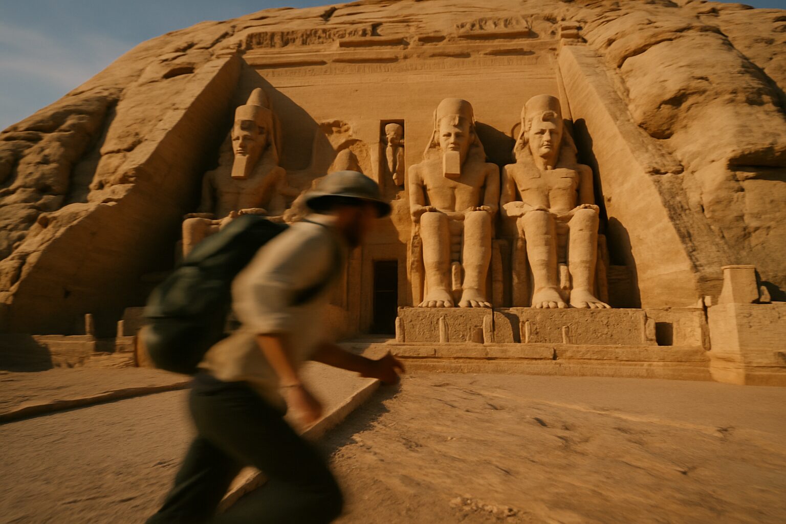 そしてついに、地平線の彼方から太陽が顔をのぞかせた瞬間、世界は一変します。最初の黄金色の光が大神殿の正面に鎮座する4体のラムセス2世の巨像を照らしはじめます。その光はゆっくりと王の顔、肩、胸へと移り、冷たい石の像がまるで命を吹き込まれたかのように温かみを帯びていくのです。