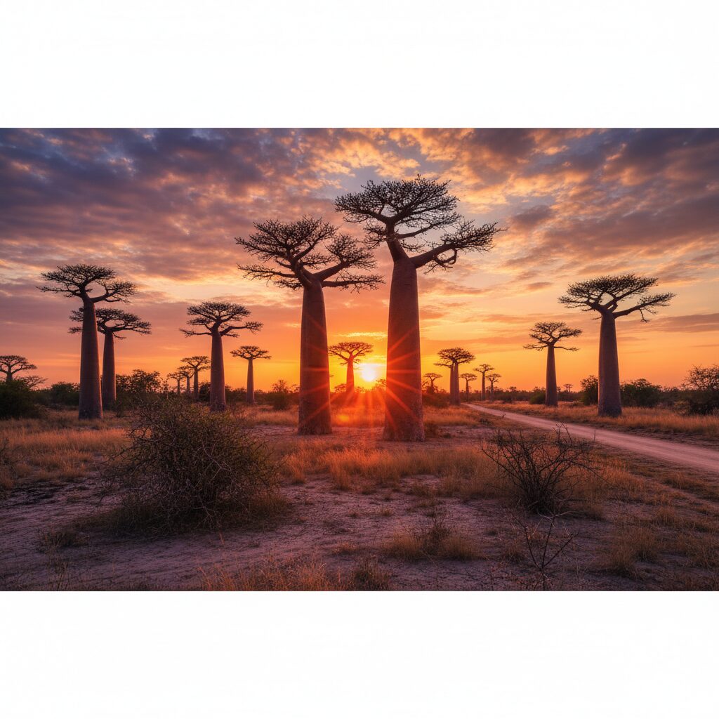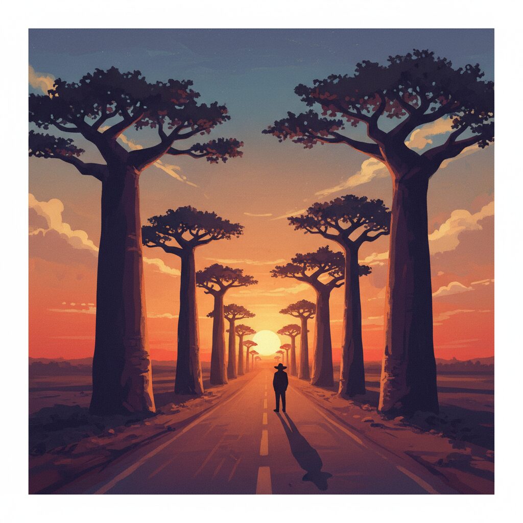 まるで地球が創り出した巨大な彫刻のようなバオバブの木々が、赤土の道の両脇に悠然と立ち並ぶ。そして一日の終わり、太陽が水平線へと沈むとき、その場所は我々の想像を遥かに超えた、幻想的な劇場へと姿を変えるのだ。