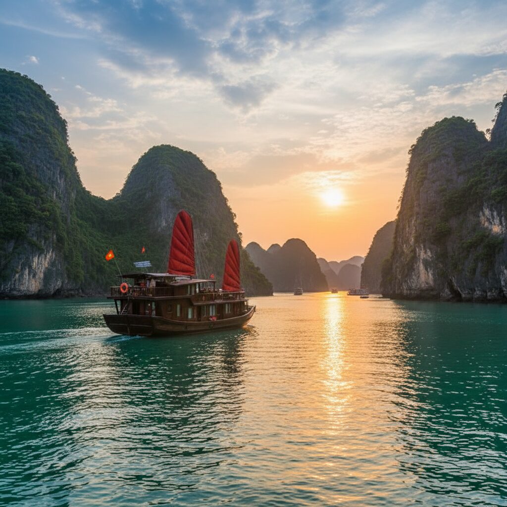 エメラルドグリーンの穏やかな海面に、墨絵のように浮かび上がる大小2,000もの奇岩。まるで神々が創造した巨大な彫刻庭園のようなその光景は、一度見たら決して忘れることのできない感動を心に刻みつけます。ベトナム北部に位置する、ユネスコ世界自然遺産... -