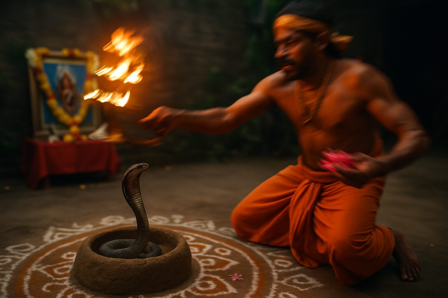 インド各地では、雨季のある特定の日に「ナーグ・パンチャミー」と呼ばれる蛇神を崇拝する祭りが催されます。この日、人々は蛇の巣穴や寺院へ赴き、ミルクや米、花などを捧げて蛇神への感謝を表し、蛇に噛まれる災厄から守られるよう祈願します。