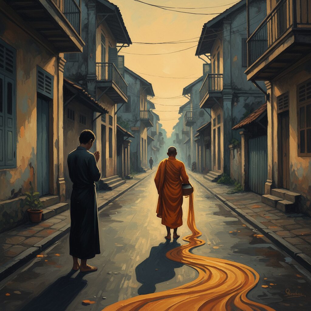 橙色の袈裟の列が朝霧の中へと消えていくと、街は少しずつ日常の表情を取り戻していきます。市場は活気を帯び、子どもたちの声が響き、バイクのエンジン音が聞こえ始める。まるであの神聖な時間が幻であったかのように。しかし、あなたの心の中には、静かで温かな何かが確かに残っているはずです。それはこの古都に流れる、目には見えない精神の流れにわずかに触れた証と言えるでしょう。