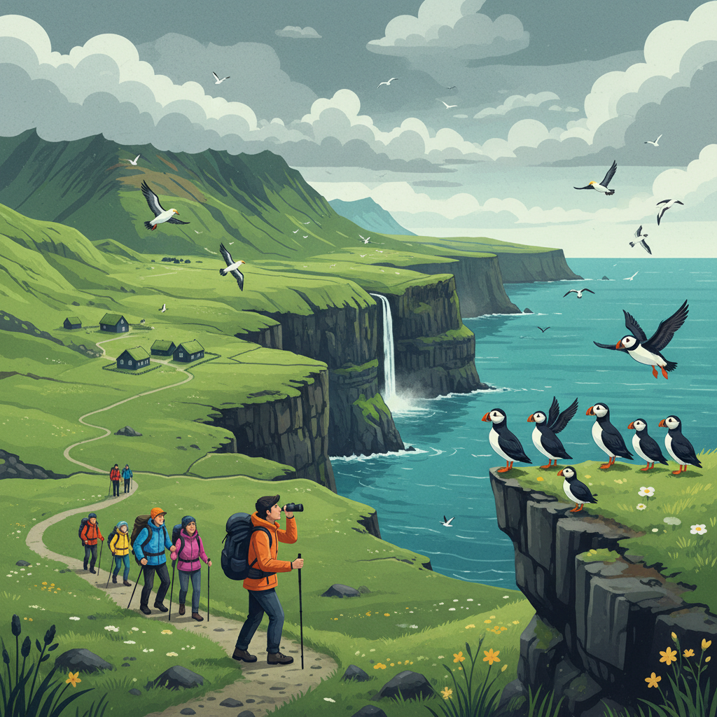 - ミキネス島灯台トレイル: パフィンを間近に観察しながら歩く、夢のようなルート。ガイドの同行が必須。