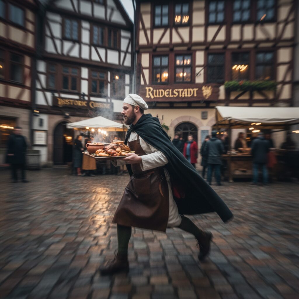 一方で、城下町の住民たちは農民や職人が多く、飾り気はないものの滋味深い家庭料理を楽しんでいました。宮廷で用いられる高級食材と、庶民が手に入れやすい身近な食材。この二つの食文化が長い年月をかけて少しずつ融合し、ルーデルシュタット独自の風味を形作ってきたのです。伝統的なレストランを訪れれば、その歴史の名残を感じる料理に出会うこともあるでしょう。