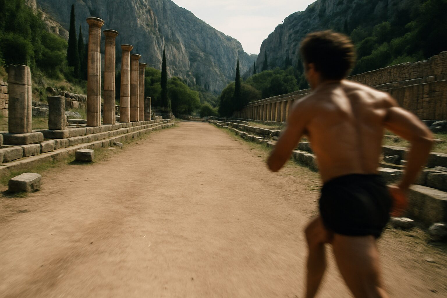 - スタディオン走:クシストスやパラドロミスのコースで何度もスタートダッシュを繰り返します。号令とともに瞬時に地面を強く蹴る。その一瞬に全力を注ぐ集中力が培われました。