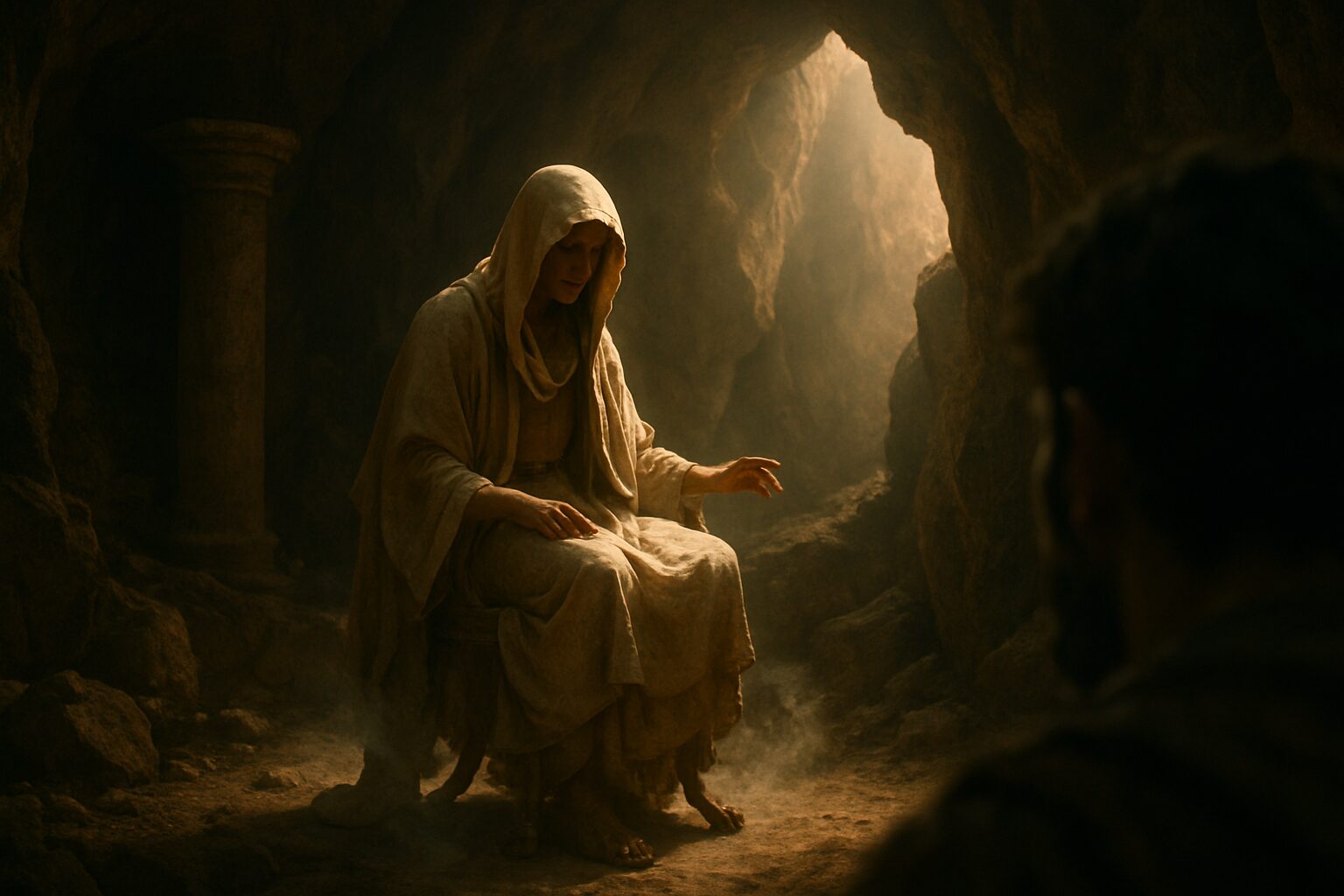 [ { “heading”: “洞窟の入り口に立った瞬間、まず圧倒されるのはそのスケール感です。”, “body”: “洞窟の入口に立つと、まずその圧倒的な大きさに驚かされます。数十メートルもの高さを誇る巨大な開口部は、まるで自然が築いた壮麗な神殿の門のようです。夏の強い日差しが照りつける外の世界とは対照的に、洞窟の内側からは冷たく湿った空気が流れ出し、汗ばんだ肌を優しく撫でていきます。この温度差は単なる物理現象を超え、俗世と聖域の境界を示す結界のようにも感じられます。” }, { “heading”: “一歩足を踏み入れると、外の喧騒が嘘のように静まり返ります。”, “body”: “一歩中に入ると、外の騒音が嘘のように消え去ります。洞窟の壁が音を吸収し、深い静寂が空間を満たします。自分の足音だけが不自然に大きく響き渡ります。目はすぐに暗さに慣れませんが、徐々に闇の濃淡がはっきりしてくると、この洞窟の広大さに改めて息を呑むでしょう。高くそびえる天井はまるで大聖堂のドームのようで、入り口から差し込む光が岩肌を神秘的に照らし、巨大な鍾乳石や石筍がまるで神々の彫像のように浮かび上がります。” }, { “heading”: “なぜ、この場所が聖地となったのか。”, “body”: “なぜこの地が聖地とされたのかは、この地形自身が語りかけているように思えます。大地にぽっかりと開いたこの巨大な穴は、古代の人々にとって母なる大地ガイアの子宮、つまり生命の源であると同時に、冥界への入り口とも考えられたのではないでしょうか。豊穣、死、そして再生を全て内包するこの場所は、人間の力を超えた偉大な存在の気配を強く感じさせます。アポロンのような天空神が崇拝される以前から、大地そのものを信仰していた時代の記憶が、この洞窟には色濃く息づいています。” }, { “heading”: “洞窟の空気は、ただ冷たいだけではありません。”, “body”: “洞窟の空気は単に冷たいだけでなく、石灰岩や土、そして長い年月によって熟成されたような独特の香りを帯びています。その香りは少しカビ臭くもありながら、同時に清浄な空気のような印象も与え、不思議な魅力があります。この香りを吸い込むと、肺の奥深くから何かが浄化されていくかのような感覚に包まれます。古代の巡礼者たちもこの空気を胸いっぱいに吸い込み、神々の息吹を感じながら祈りをささげたでしょう。彼らと同じ光景、同じ空気の中に今自分が立っていることに、時代を超えた繋がりを実感し、心が震えるのです。” } ]