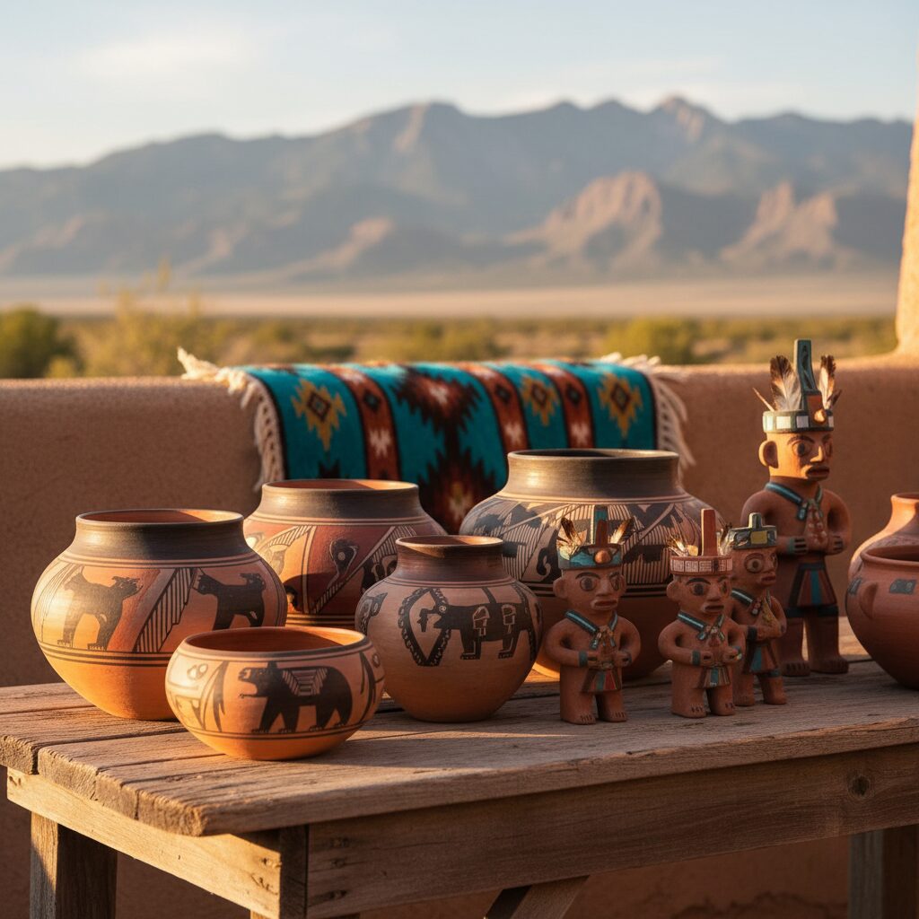 私が選んだのは、ネイティブアメリカンの伝統技法を学べる陶芸ワークショップでした。プエブロの陶芸は轆轤(ろくろ)を使わず、粘土を紐状にして積み重ねる「コイル法」が特徴です。講師は、この地で代々陶器を作り続けているプエブロの女性アーティストでした。彼女の工房は土の香りと、焼成窯から漂う薪の煙の香りに包まれていました。