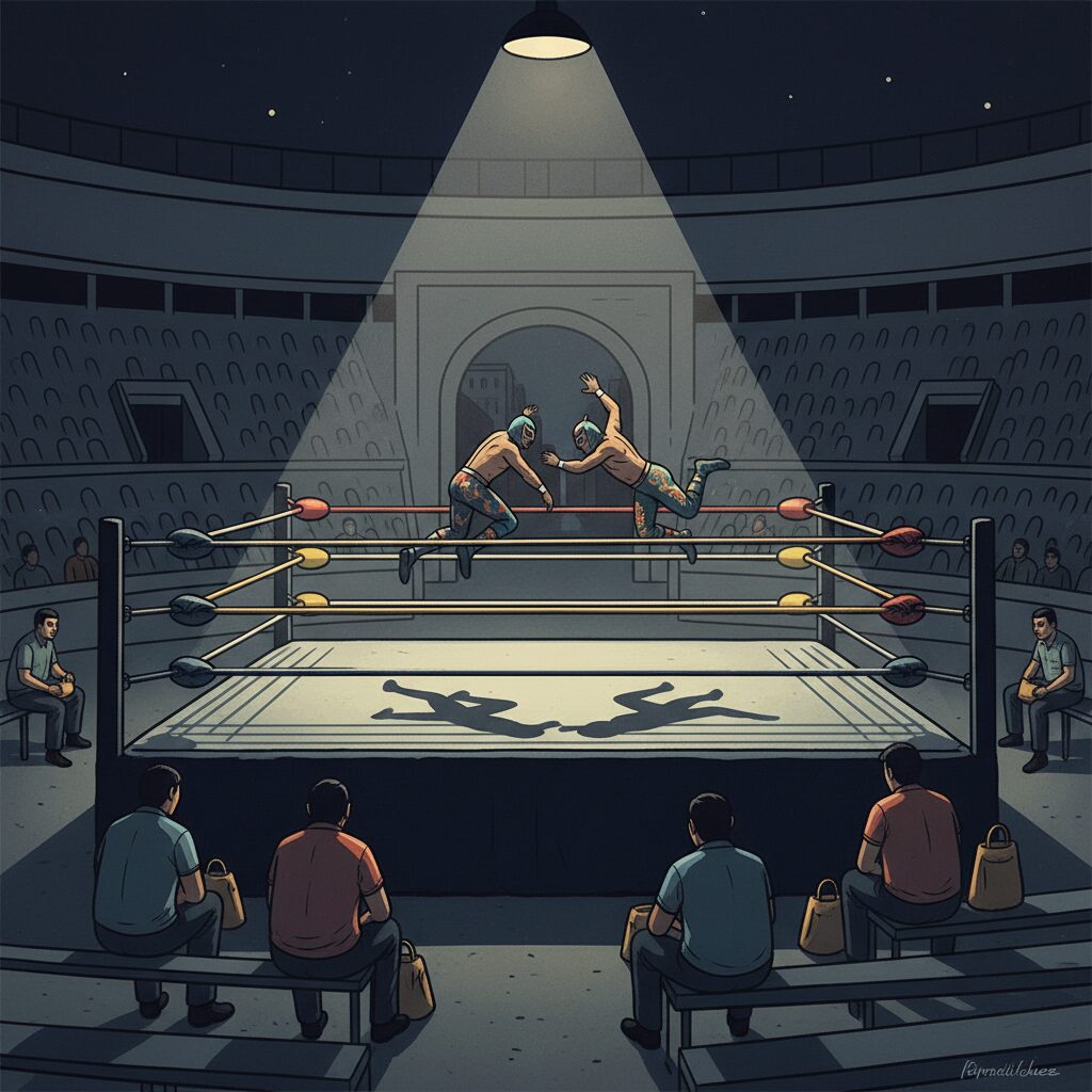 リングの上で展開されるのは、単なる勝敗の争いではありません。素顔を覆面で隠し、ヒーローとして戦うテクニコの姿には、厳しい現実社会を生きる人々の夢や希望が映し出されています。一方で、狡猾な手段で勝利を狙うルードの振る舞いには、社会の理不尽さや人間の弱さ、そしてずる賢さが反映されています。